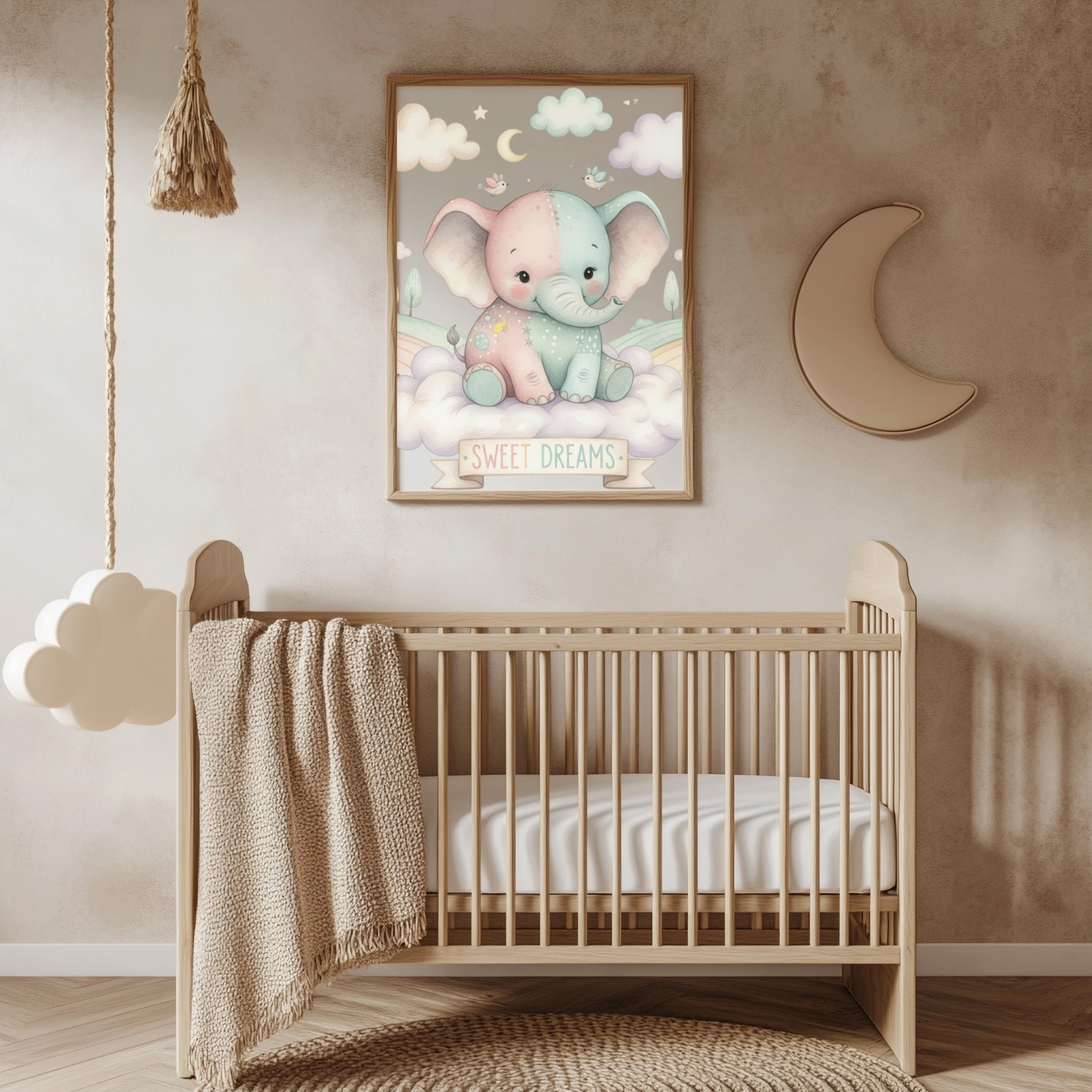 🐘 Soft & dreamy – A gentle pastel design perfect for a calming nursery vibe.